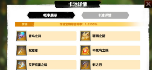 在卡池当中有很多稀有度较高的宝物,比如金色以及紫色没有保底机制,非常良心,确保每次抽卡都有机会获得宝物。还有传说装备,这也是非常关键的,可以消耗宝石来获得抽取次数。