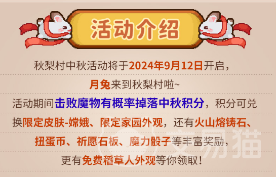 当然,除了击败月兔和积累积分兑换奖励之外,本次中秋活动还为玩家准备了一些免费的福利。活动期间,商城会限时开放免费领取的“稻草人外观”,让你的角色在中秋节期间以全新的形象示人。此外,玩家还可以使用中秋积分在商城内兑换限定的家园外观和人物皮肤,进一步展示自己的个性与游戏成就感。