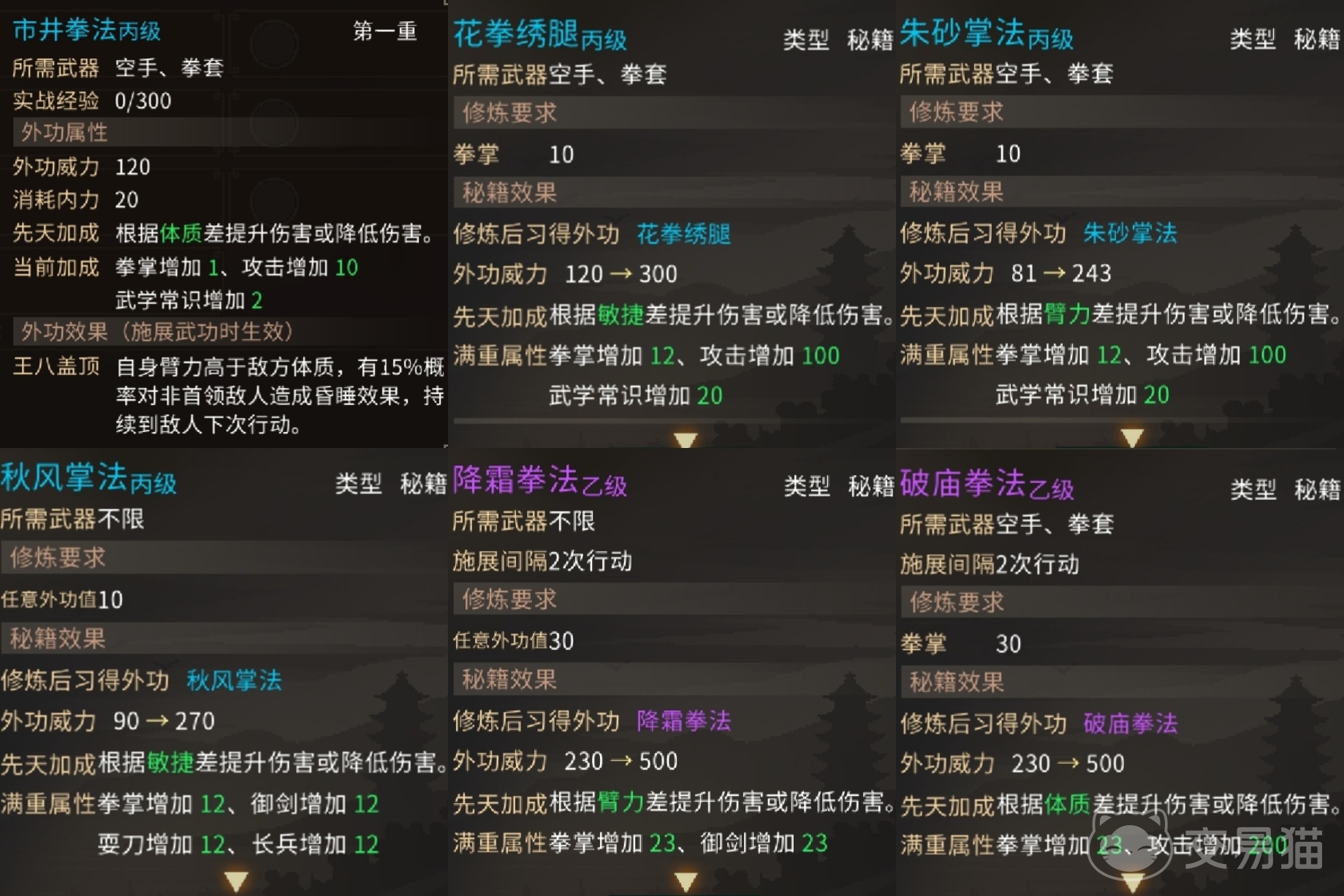 如果玩家们想要获得青萍剑法,可以直接通过武馆来进行购买,作为一个丙级的剑法,所需要的武器是剑,玩家们也可以在茶摊的落魄江湖人身上,通过交换物品或者暗取来获得,外功的威力从81达到了243。