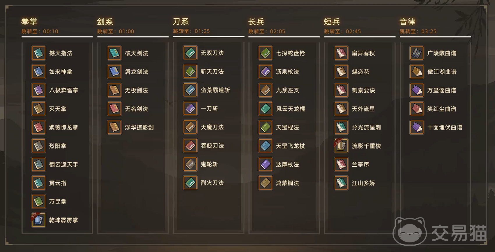 当然许多甲级武学是特定门派的独门秘籍,因此加入相应的门派并提升好感度是获取这些武学的关键。想要学习道玄宗的“无极剑法”,玩家需先加入道玄宗,通过完成门派任务、与掌门重阳子交流等方式提升好感度至敬重级别。