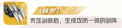 3、铸梦这个专精是专门也李白的技能青莲剑歌量身打造的,也可说铸梦就是青莲剑歌的专精,只要李白使用了青莲剑歌以后,李白周围便会因为铸梦这个专精而生出剑阵,青莲剑阵属于攻防一体的剑阵类型,不仅可以防御敌人的攻击,对敌人的还会带来很大的威胁。