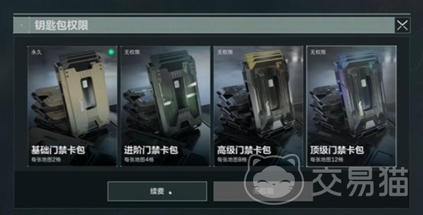 首先小伙伴们在游戏中进入游戏中钥匙包的权限界面在这个权限界面中,玩家就可以看到玩家拥有的多种卡包。在这个时候小伙伴们就可以选择自己想要的卡包进行续费,续费之后就能够解锁高级卡包。