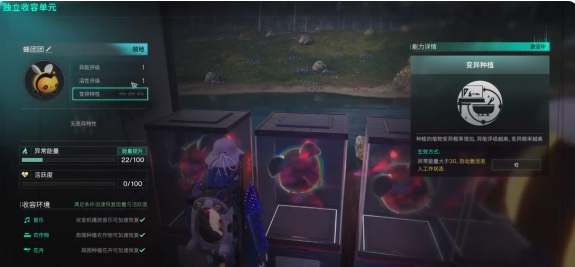 玩家可以在它的周围种植好农作物和花卉,再用收音机播放音乐就可以让蜂团团这个收容物自动恢复异常能量了,这个收容物的功能还是非常强,尤其适合那些喜欢种植的玩家们获得。