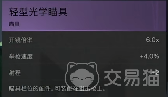 在为武器装配上轻型光学瞄具之后,小伙伴们可以发现武器整体的射程和精准度都获得了大幅度提升,同时也提高了开镜的速度,在战斗中可以很大幅度的提升小伙伴们射击的效率和命中率。这一配件比较适合装配给游戏中的各种远程武器,开镜之后可以让大家获得大概6倍镜的视野,同时可以更加精准的瞄准对方的头部胸部等部位。另外由于射程也得到了提升,因此小伙伴们的射击距离也会变得更远。