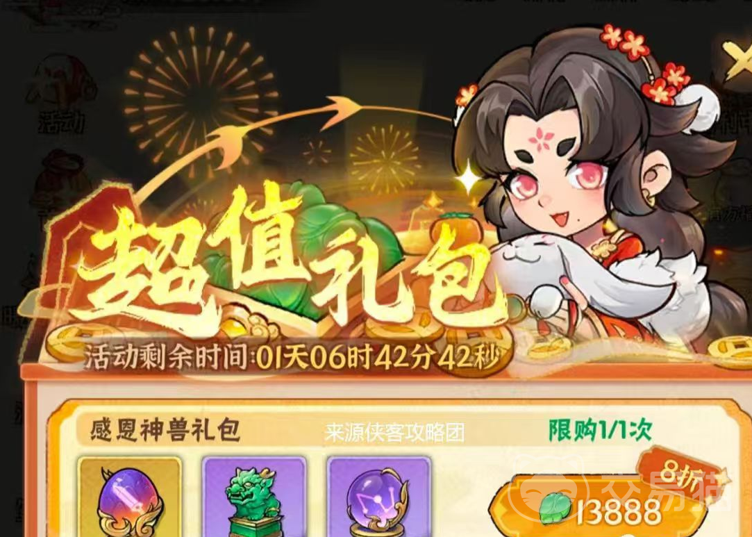 行侠仗义五千年游戏会定期开通充值活动,比如普通以及豪华版月卡,以及首充奖励,通过充值获得神兽礼包,礼包内包含自选神兽及神兽的相关培养道具。