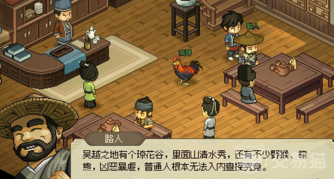 首先玩家需要钱霖安城的悦来客栈打听消息,和店里的路人进行对话,他会向我们要钱,这里选择给他后就会告诉玩家琼花谷的位置,有了位置我们通过小地图直接前往,这里的地图基本都为一个圈,玩家一直向右走并沿路清空周围的怪物即可。