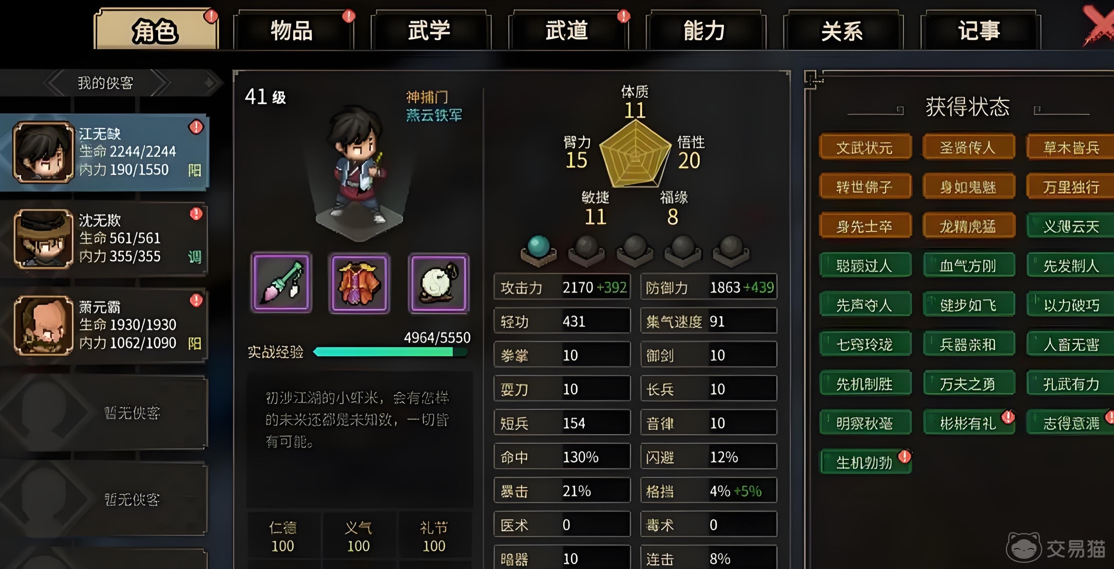 大侠立志传退门流玩法搭配一览: