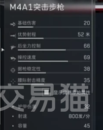 m4a1突击步枪本身的属性主要从六个方面进行介绍。它带来的基础伤害有20点,并且可以达到52米的射程,在所有的枪支中处于比较中等的射程范围,所以在后续的改造中可以合理的使用高倍镜等等。而在大家都关心的后坐力控制这方面,数值高达66个点,同时稳定性是38,这两个数据会让不少玩家对m4a1产生更高的要求,但可以通过后续改装解决。操控速度为69以及腰际射击精度为35,这两点让玩家比较满意。