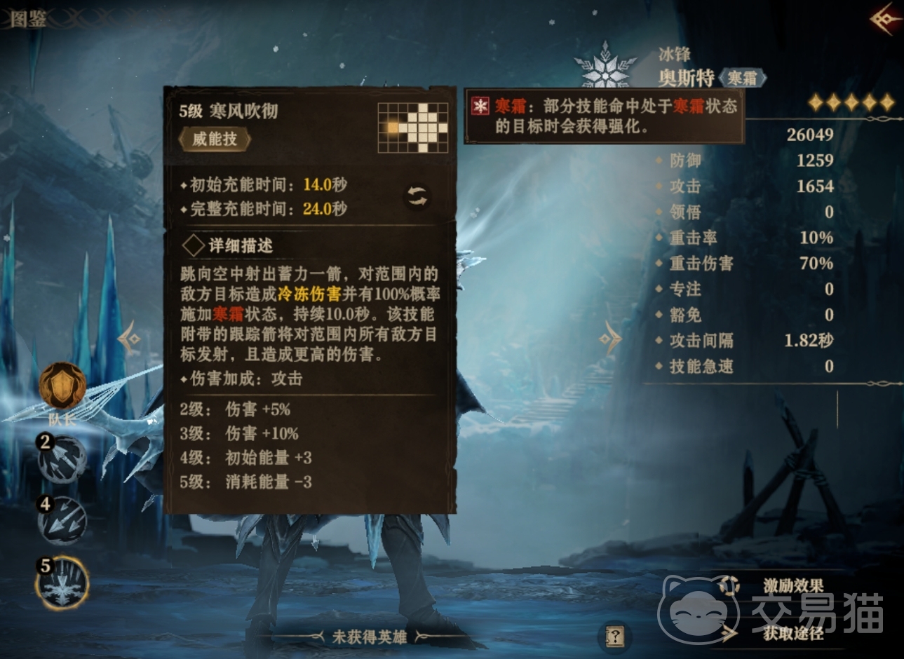 作为有着寒霜特性的角色,奥斯特可在攻击(包括普攻和技能)时向至多两名带有寒霜状态的敌人再进行一次追踪箭的攻击,并且该追踪箭不光能为目标再附加上寒霜效果,还可提高奥斯特的威能充能速度。