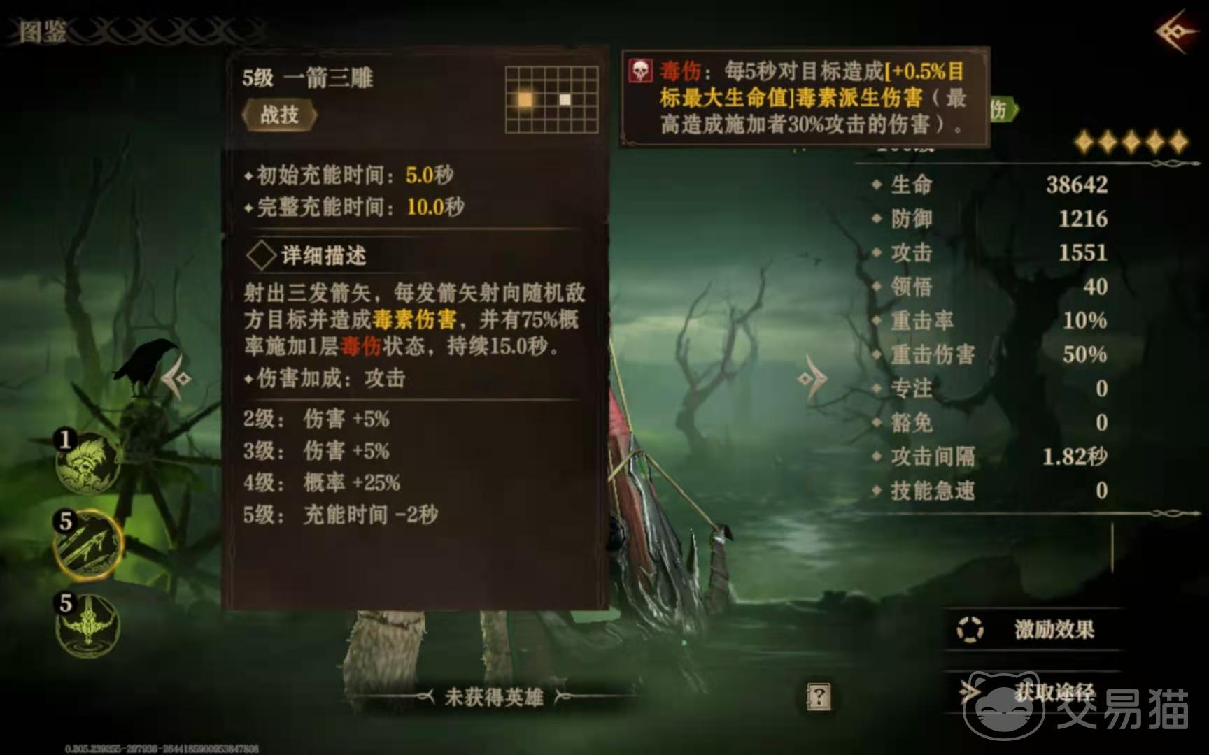 进入五级之后,你就可以拥有另外两招,一个是战技一箭三雕,使用它可以朝一个方向发射出三支箭,被命中的目标会遭受毒素伤害。