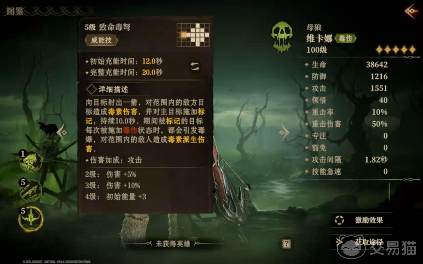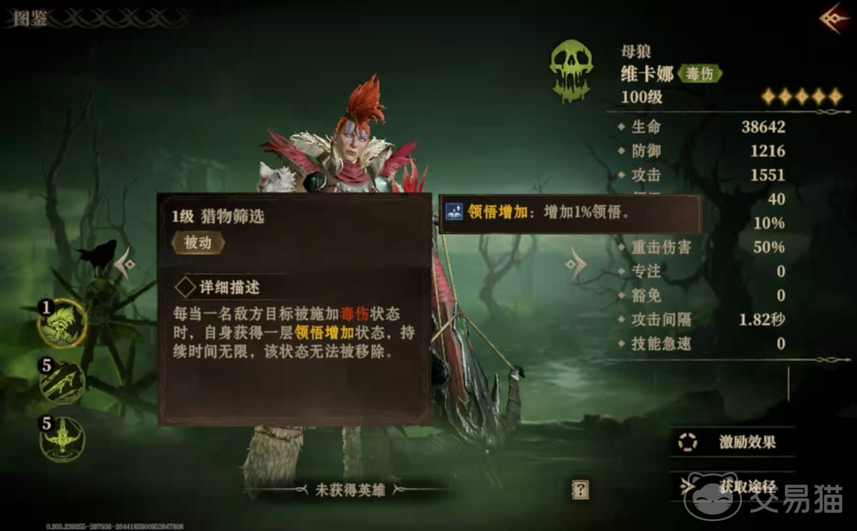 维卡娜还拥有三个不同的技能,在英雄一级的时候就会解锁猎物筛选,这招属于被动技,只要有一名敌人陷入毒伤,维卡娜就能进入到领悟增加的状态下,可以无限次数地叠加下去。