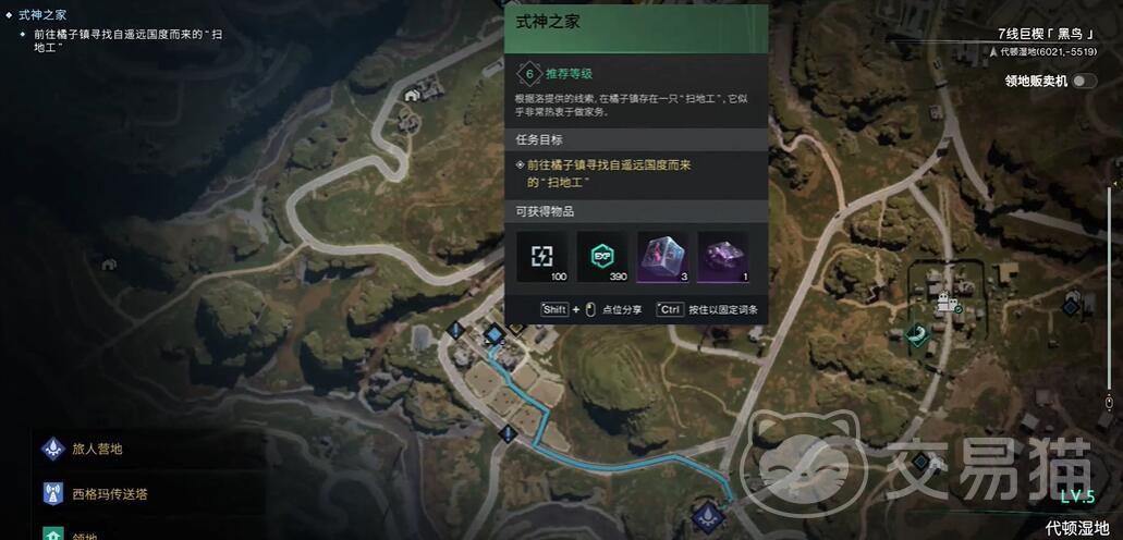我们想要做这个任务的时候首先需要知道这个任务应该在哪里接取,发布这个任务的npc名字叫做洛,洛所在位置为旅人营地,我们使用传送塔到达旅人营地以后,查看一下小地图,然后往小地图6点钟的方向行走,走到一幢看起来比较要好的别墅处时,可以看到有一个男人正坐在门口的椅子上面,这个男人就是我们要找的任务发布者洛,然后和洛进行一番对话,会出现一个选择,我们这时不要选第一个选项而是要选择第二个扫地工也是异常物的选择,这时我们就接到了式神之家的任务。