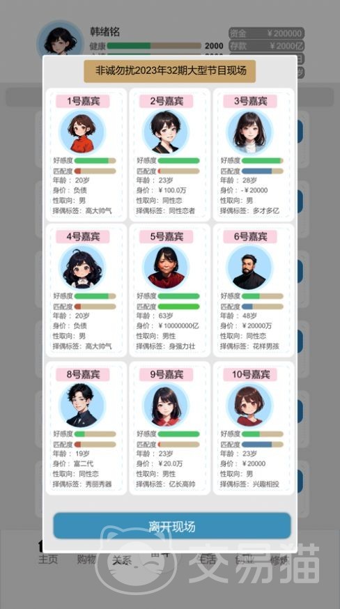 游戏中的这四个属性,都希望玩家们来做出选择,不同的选择都会影响相应的属性值,需要注意的是,如果处理突发事件使用暴力,就会降低大家的健康值,但是用智力解决暴力是可以提升自己的健康值,如果约会被拒绝,就会降低欢乐值,同样长相以及处理职场事件,会影响大家的智力值,游戏中设计的这些属性还是非常有趣的,并且刚开始都会有一个固定的数值,后续参与不同的玩法以及选择。