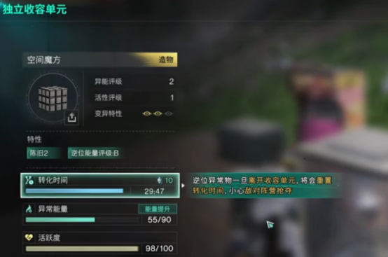 当收入完成之后,能够转变成为普通的异常物,也有着较大的作用,能够给玩家个人阵营加上逆位能量积分。在收容的过程当中一定要多加注意,很有可能会被敌人抢走,所以一定要将家搬过来,只有这样才能避免收容物被掠夺。要注意被打的时候自己无法进行搬家,因此一定要寻找到机会搬家。