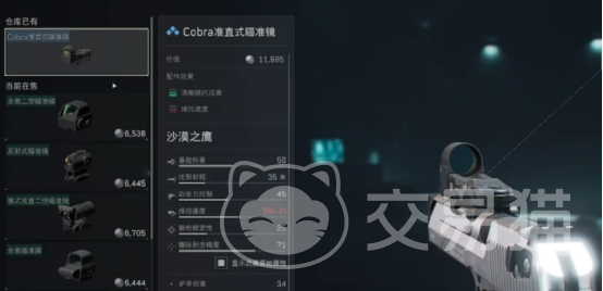 沙漠之鹰被很多玩家称之为手枪之王,拥有着超强的输出性能,即便是一把手枪,但输出威力也是非常大的,基础伤害为50,射程为46,操控速度为50,枪械稳定性较强为29,射击精度为59。