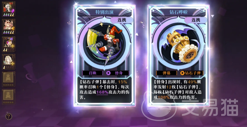 这个阵容算是一个常规阵容了,前期用来过度是非常不错的,在对战的时候,镜之梦有大招就开,等通关到9级的时候,就可以拿上暴富之梦去开启自动攻击来刷关了,而且目前版本中,镜之梦算是人权卡了,前期单人还是组队都是非常不错的选择,但是后期的话,肯定不能单靠这一个,到了后期很多boss都是有大量唯一的,所以镜之梦 最好是开六激光,这样可以直接把伤害全部打上,玩家们可以利用这个重叠技能的方式,去多打出伤害!当然了,回响的选择在可以选择【特别演出】,这个可以在释放钻石子弹的时候,增加暴击效果,而且每一次都可以额外召唤出一个替身,伤害还是很高的!第二个则是选择【钻石哗啦】,这个技能的话,主要是强化弹幕攻击和钻石子弹,当出现替身效果的时候,会有概率提升攻击子弹的数量,而且每一颗的子弹伤害还会增加!