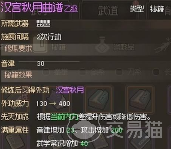 接下来,你需要前往西南地区的荒废庭院,并选择帮助妙音坊。这个时候就会触发一场战斗,得到胜利了以后,你就能够将汉宫秋月曲谱拿到手了,这个曲谱是可以提升音律技能的。