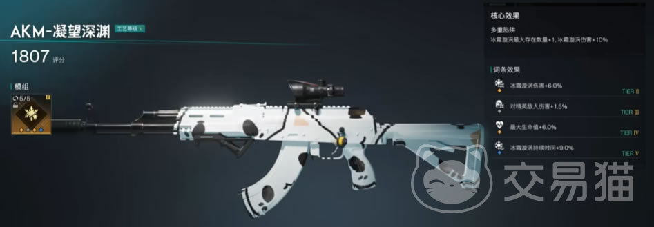 在模组搭配上,凝望深渊当然是最适合使用冰伤模组。武器模组也可以使用多重陷阱,核心效果是增加一个冰霜漩涡,同时提升冰霜漩涡伤害效果;面具模组选择持续冰封,这个模组是冰霜漩涡的最终伤害将根据它的存在时间进行额外加伤,时间越长伤害越高,最高能增幅60%。