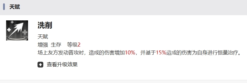 更为神奇的是,传影的天赋还能基于这增加的15%伤害转化为自身的恒量治疗,这意味着,随着战斗的进行,传影不仅能持续为队伍提供火力支持,同时也能确保自己的生存能力,这种自给自足的治疗机制,让传影在没有奶妈或者是,奶妈能力不突出的队伍当中也有足够的生存能力。