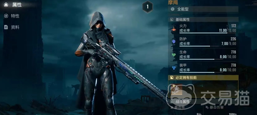 摩羯作为金色伙伴,其外观炫酷,手持狙击步枪,展现了其在远程攻击上的绝对优势。技能方面,摩羯拥有“战术技武器超载”、“主动技能绝对专注”以及“被动技能弱点导航”等多个强力技能。战术技武器超载能够在累积满战术点后,对敌人造成多次伤害,输出能力非常不错,主动技能绝对专注则能在短时间内大幅提升命中率和攻击速度,使得摩羯的输出能力更上一层楼。被动技能弱点导航则能在命中敌人头部时,提升暴击率和暴击伤害,进一步增强了摩羯的杀伤力。