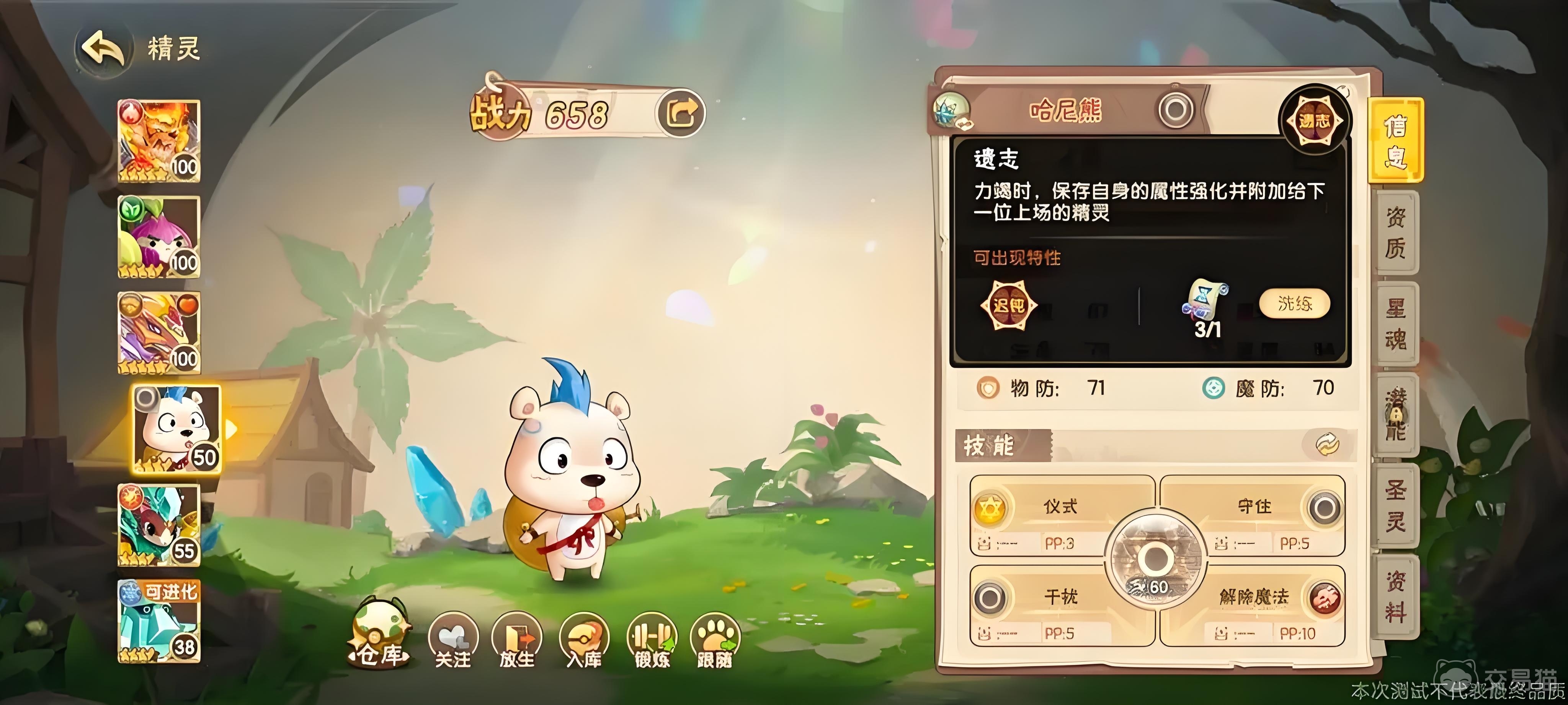 哈尼熊的技能主要有两个,分别是撞击以及天降蜜罐,撞击属于哈尼熊的物理攻击技能,这个技能的初始威力为75,在使用这个技能时,哈尼熊会直接向敌人的身体撞击。