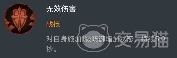 雅米拉的三技能战技无效伤害会让雅米拉自身施加一层防御的状态,持续五秒。