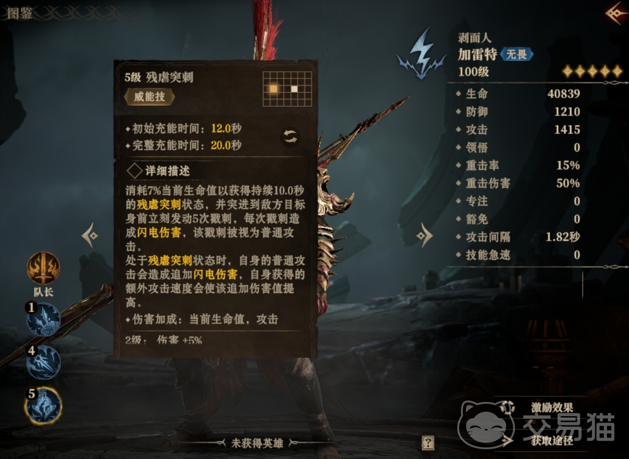 加雷特的核心在于其威能技,发动时他会直接来到目标附近,并打出五段被视为普通攻击的戳刺,且威能技持续时间内,加雷特每次进行普通攻击时,都会再追加一次闪电伤害,这也意味着五段伤害均能享受到一次附带追加攻击的效果,是一个爆发能力非常强的威能技。