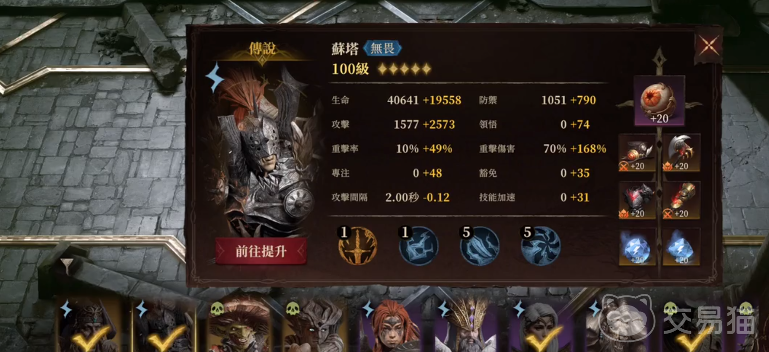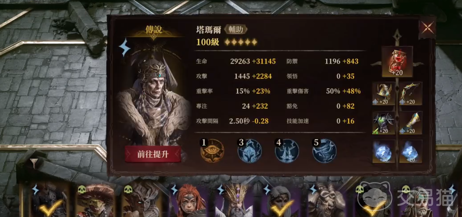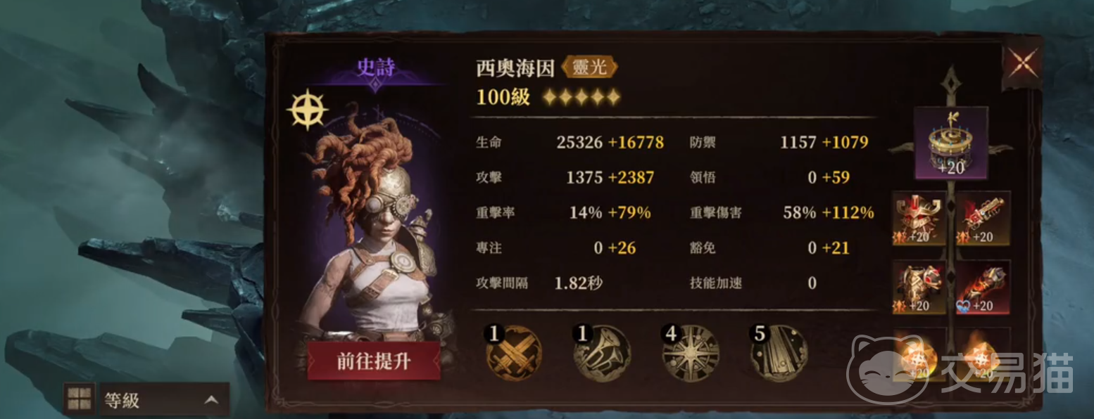 西奥海因是灵光的定位,玩家如果喜欢贷款演戏的也可以替换。西奥海因推荐携带生命与防御的套装,比较稳一点,如果挑战失败,可以将防御牺牲换攻击。