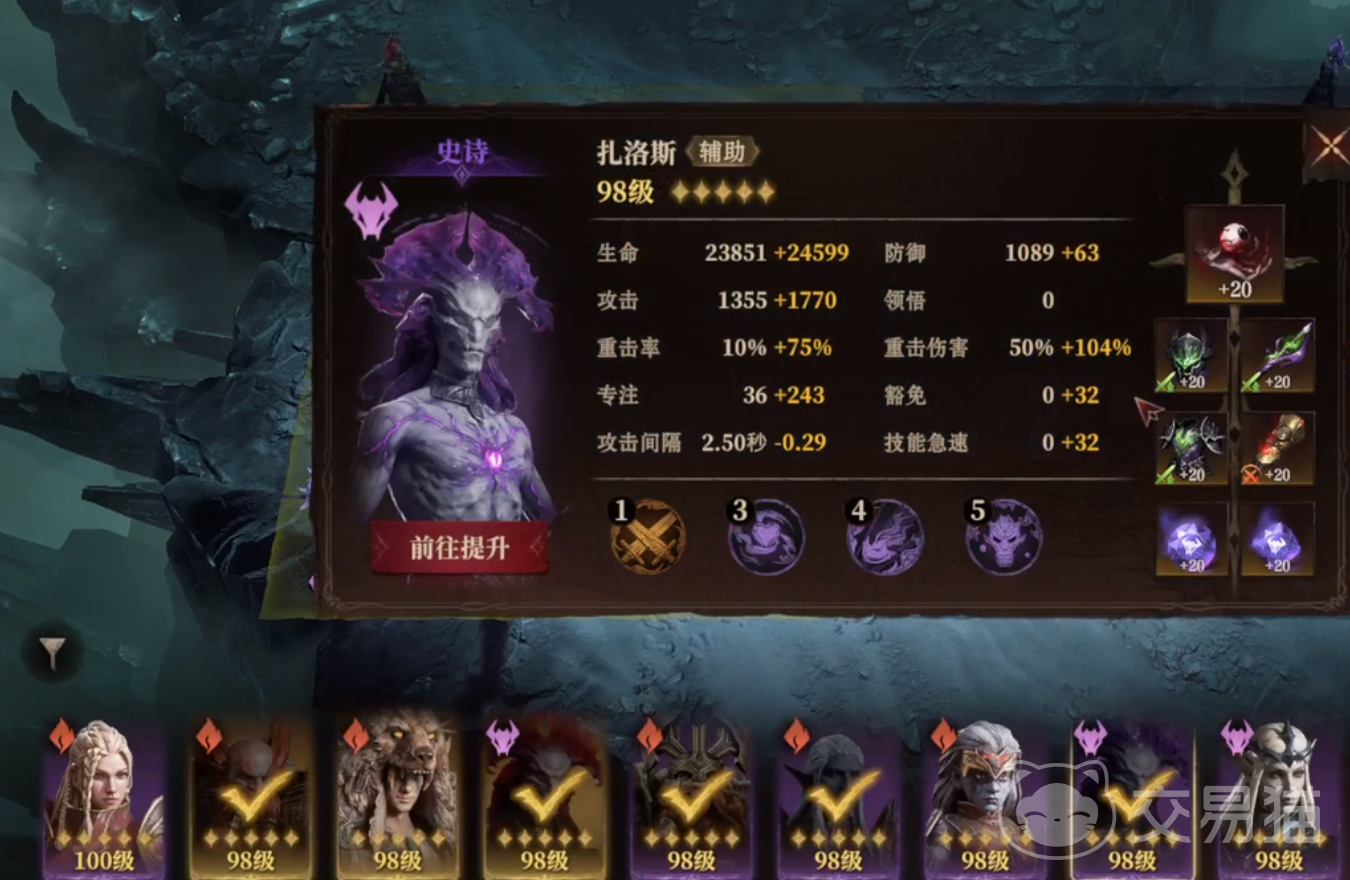 大招召唤5秒钟的囚笼,对关在笼里的敌人造成按属性伤害,并且有35%的几率施加恐惧debuff,对所有的队友进行30%攻击力的治疗。而且强势的点在于,扎洛斯,每命中过一个敌方目标都会为这次的治疗量增加15%。