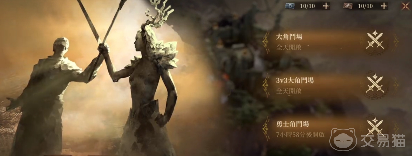 游戏里面的角斗场分为三大类,分别是全天开放的3v3角斗场,全天开放的大角斗场,以及勇士角斗场。团队竞技需要邀请函进入,每次送10张券,消号之后会随着时间恢复,竞技场有10倍速,刷起来也比较快。