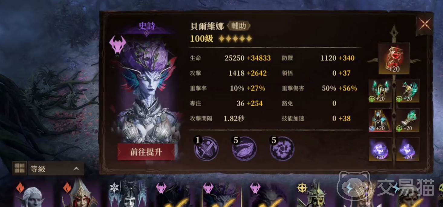 贝尔维纳是眩晕阵容的核心,是挑战妖精迷宫中间的史诗级辅助角色奖励,是中后期玩家必然会拿到的角色。优先升贝尔维纳的战技与大招,5级战技晕头转向可以在释放后对敌方目标弹射6次法球,每次造成40%的眩晕效果。战技满级完整的充能回复时间为9.4秒,如果再给贝尔维纳加上全套的加速套装,比如神器裂隙沙漏满级能够让技能加速翻倍,在战场上实现持续眩晕。
