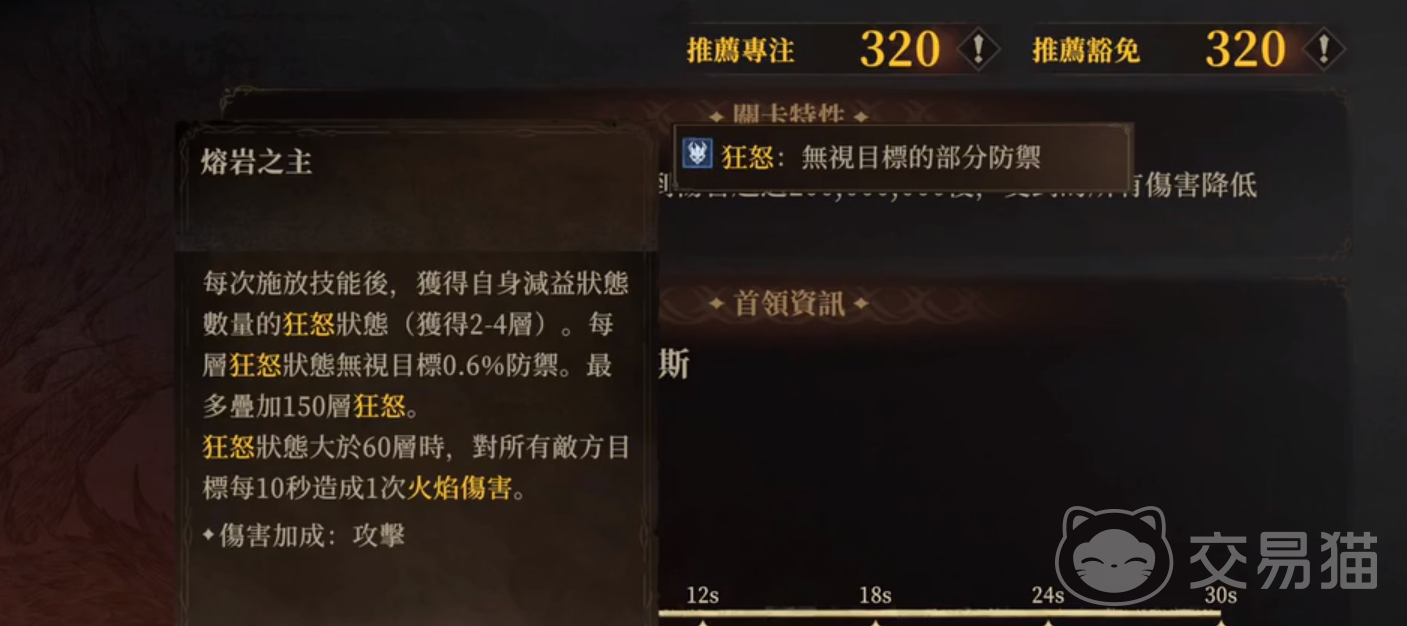 阿沙提乌斯挑战的难点在于,当boss的血量掉到50%的时候,会获得额外的增强,脆皮的阵容很容易翻车。阿沙提乌斯特性是狂怒,每次释放技能之后,自身获取减益状态数量的狂怒状态, 每一层宽度会无视目标,0.6%的防御最多可以叠到150层。更为厉害的点在于,狂怒60层会对场上所有目标造成每十秒一次的火焰伤害。而且boss免疫控制以及减少威能免疫,因此玩家在组阵容的时候,避免玩控制减益队。