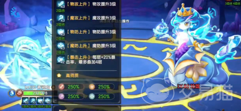 第五个boss喵影,这个boss机制特殊是双人作战,所以上场的时候用两只哈尼熊,都是先用守住技能保住自己的生存,然后使用仪式提升自己的属性,然后死掉这个层数不会掉落,最后由青瓷龙收尾。