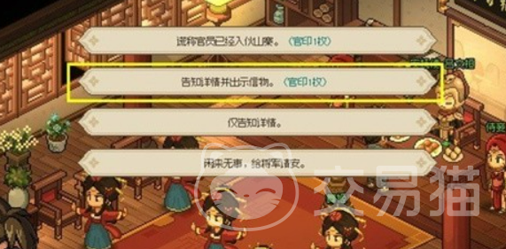 你可以选择答应救官员离开,并获得官印,前往将军府见吕文桓。此时,你有几个选项:你可以谎称官员已投靠山贼,或者直接展示信物。这两条线索会将剧情引向完全不同的结局。