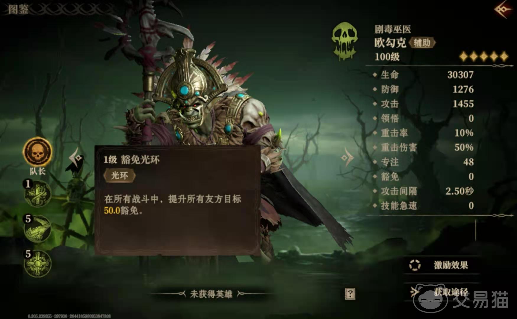 欧勾克在初始阶段就拥有多个技能,一个是队长技能叫做豁免光环,无论在什么场景中,这个技能都可以生效,为所有的队友带来更高的豁免值加成。