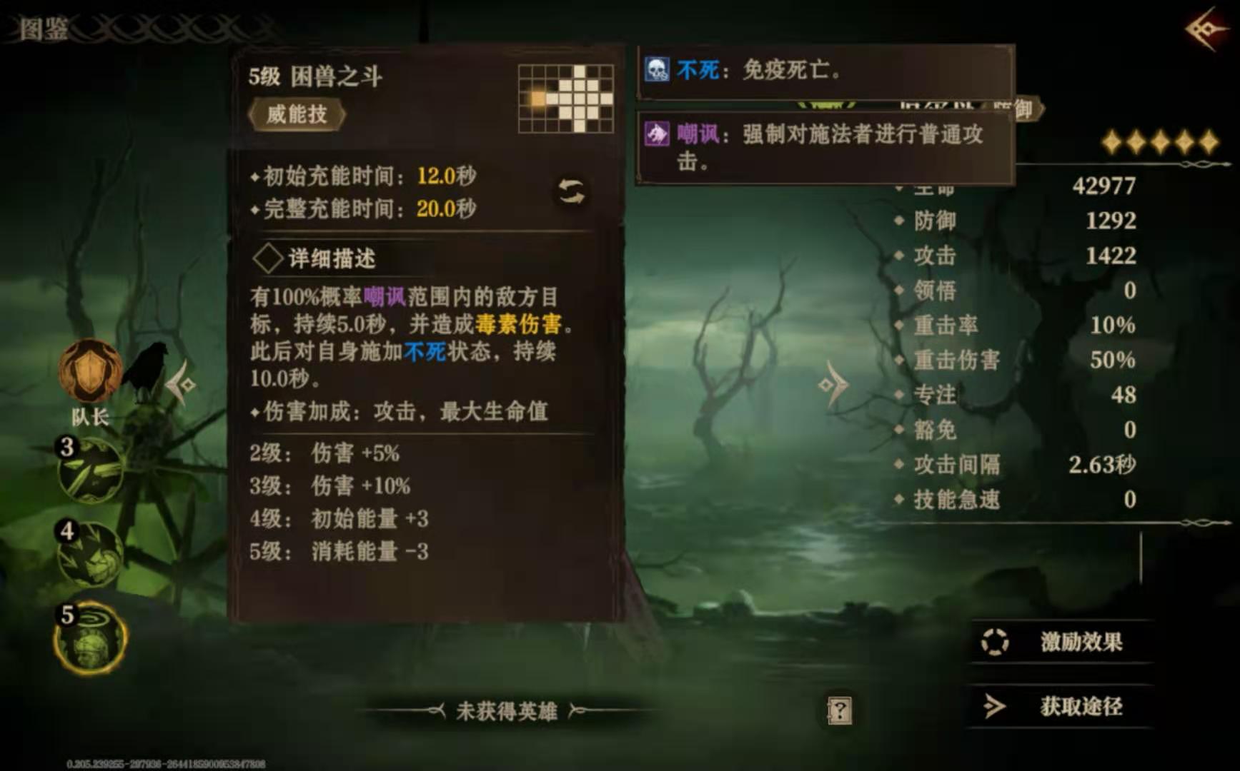 厄尔丹的威能技困兽之斗在五级时就能使用,大家可以借助这个招式去强制攻击范围内的所有英雄,同时角色自己会进入到不死状态中,期间就算被对手围攻也不会死亡,这个状态会持续十秒钟。