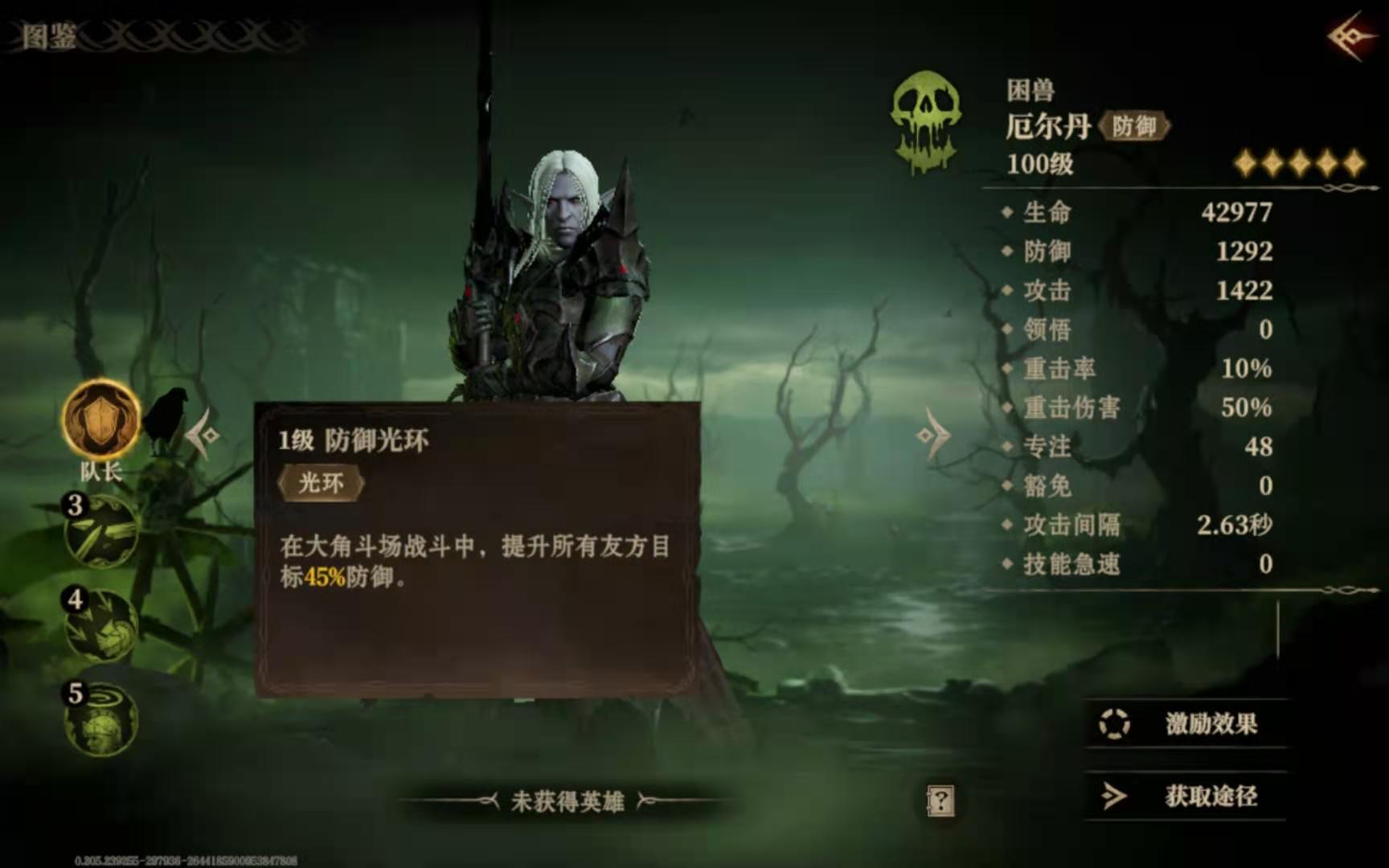 厄尔丹的第一个技能在一级的时就能去用,不过只能在大角斗场这个场景中才能生效,释放这招之后可以提高队内所有人的防御力。