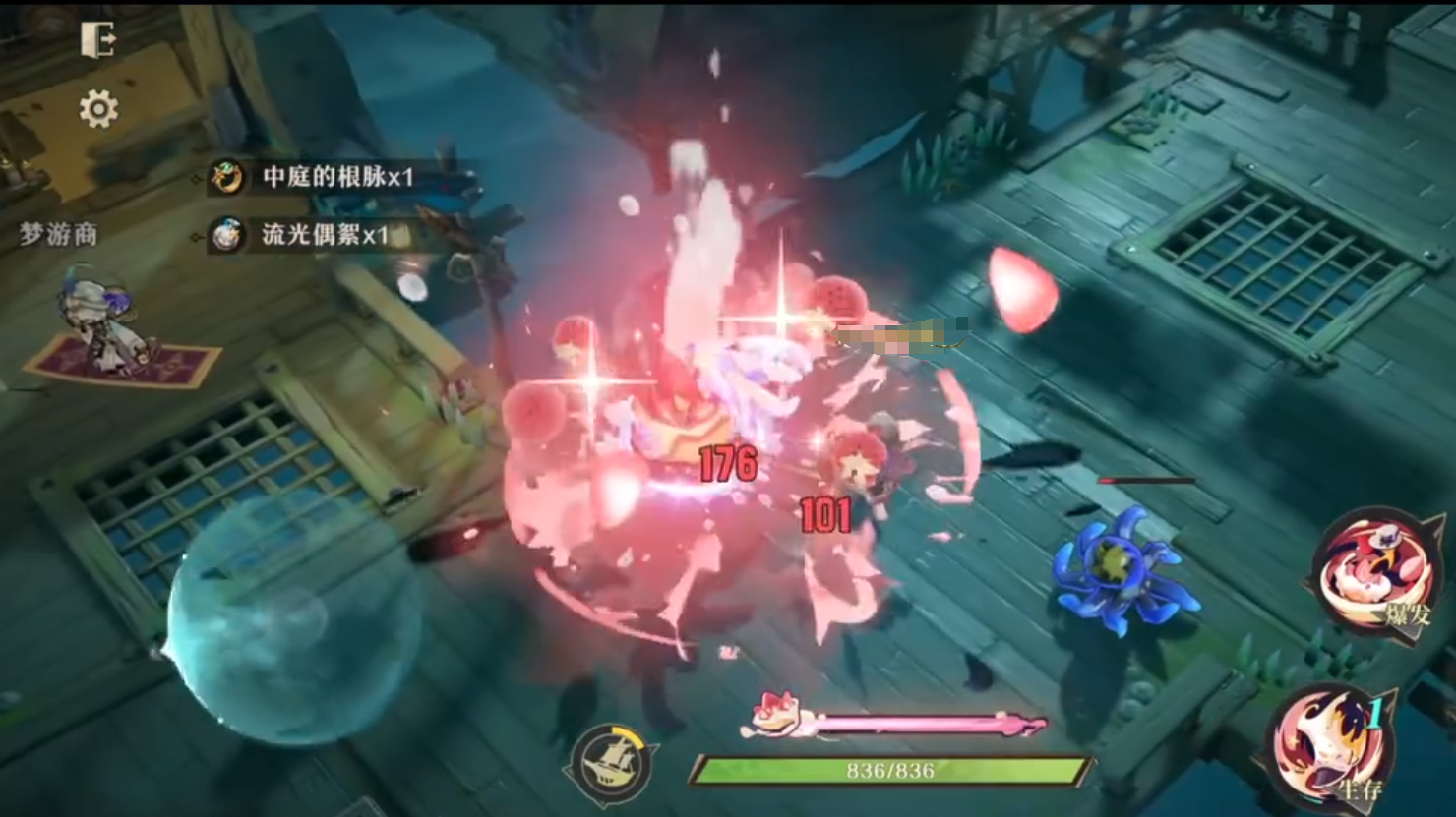 普通攻击:甜蜜横扫。甜食之梦挥动武器进行单个敌人的三段横扫,最后一段攻击命中后会带有甜蜜冲击,造成圆形范围aoe伤害,有一定几率触发眩晕。
