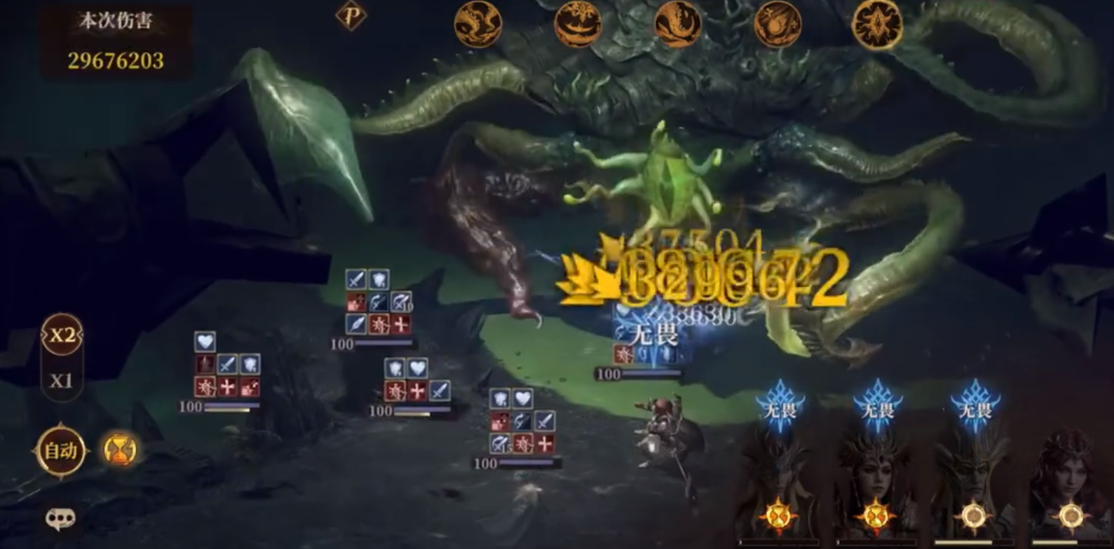 无畏阵容由具有多段伤害大招的角色搭配进行破甲,大招卡在boss虚弱之前释放,确保boss在虚弱期不会因为大招产生减伤的buff。