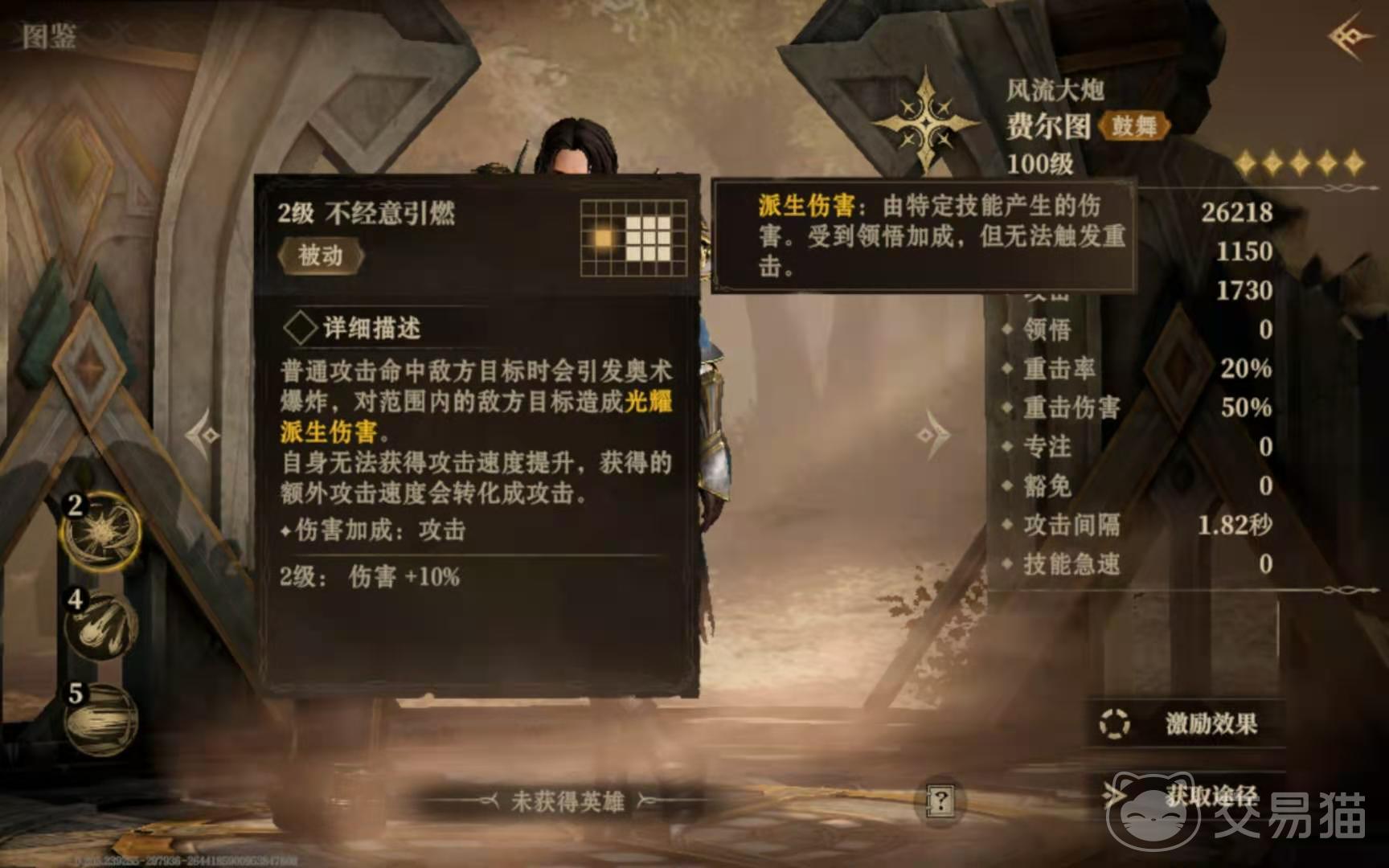 费尔图在初始阶段没有技能,需要等到它二级的时候才能解锁第一个叫做不经意引燃的技能,当你用它去进行普攻之后,就会在目标身上引发奥术爆炸,并对附近的人造成光耀派生伤害。