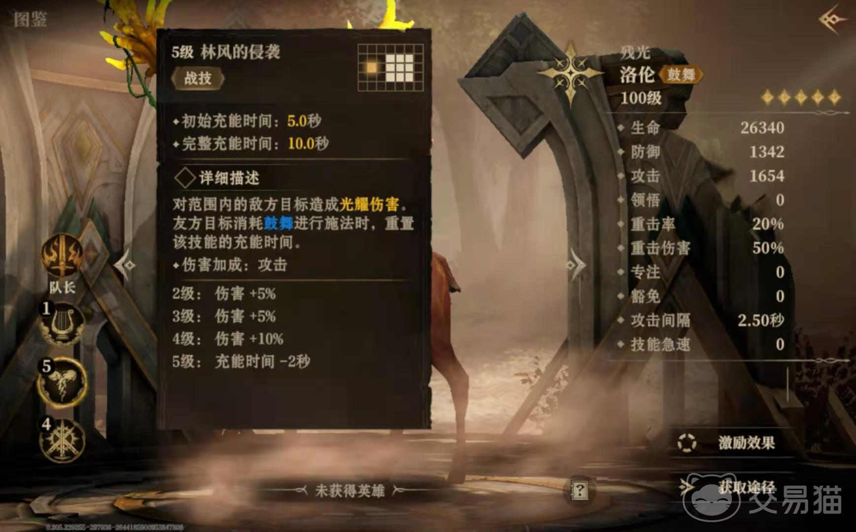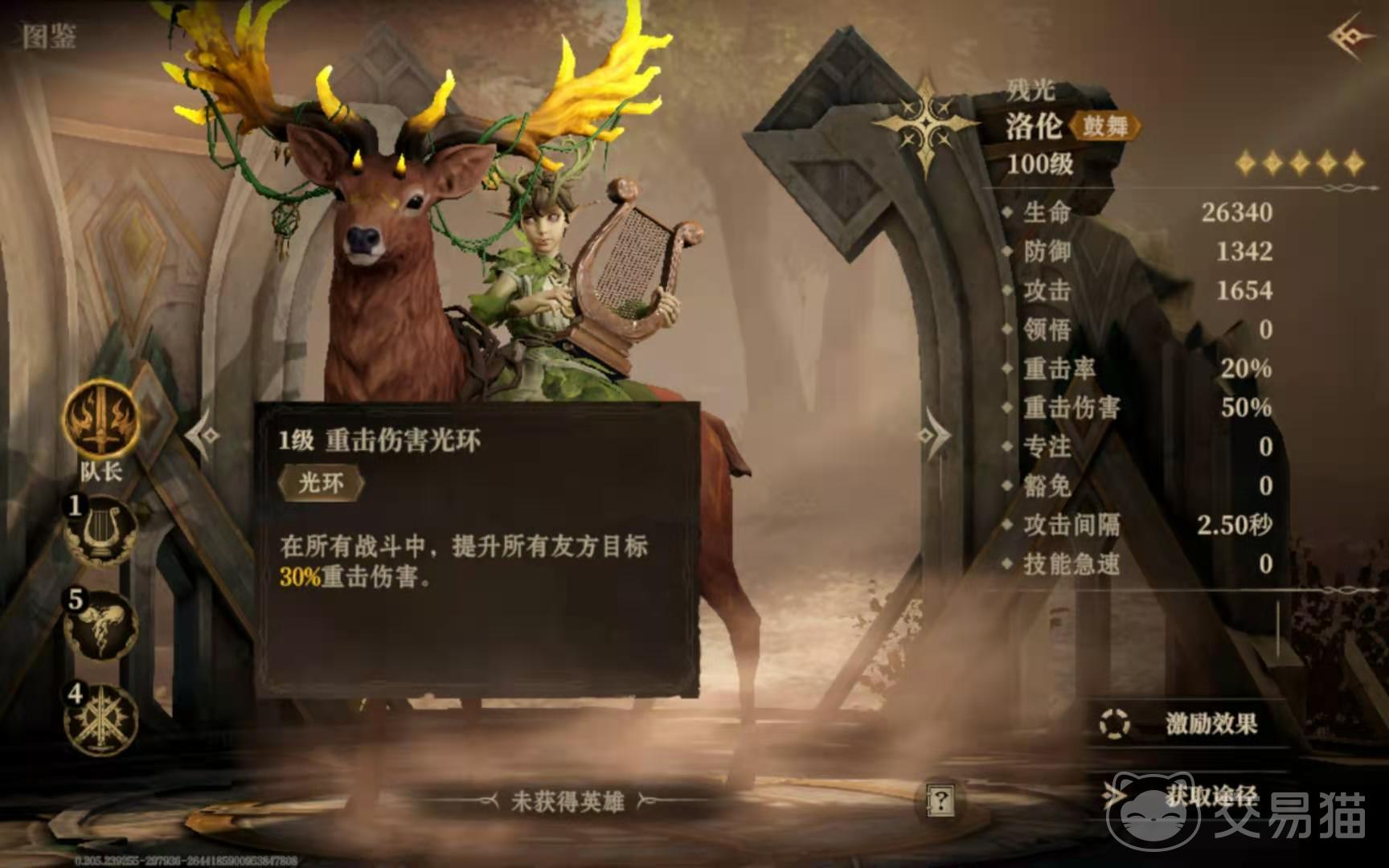 金鹿的指引这个特技想要触发的话,需要等到洛伦的威能积攒满了,接着英雄就会进入到鼓舞状态并持续十秒钟。
