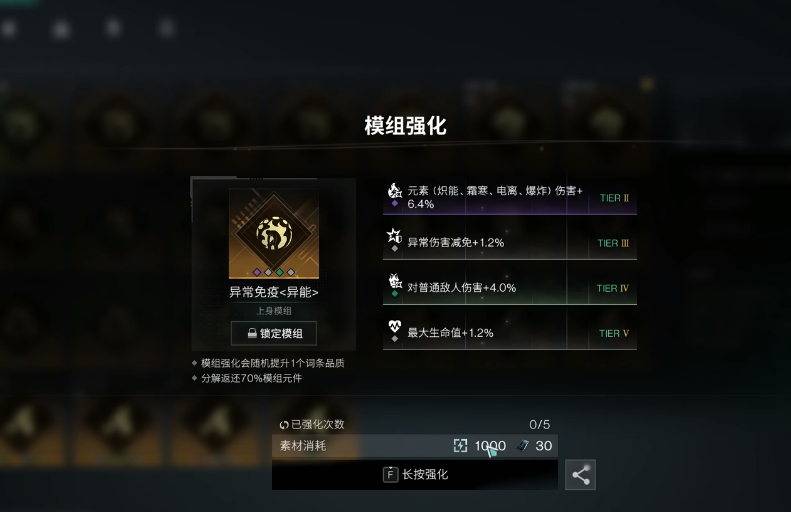 3、异常增幅,这个模组的话主要是大大提升玩家的元素伤害,而且支持多个元素的伤害,最好是能够再带有异常伤害这样的词条属性,这样价值会跟高;