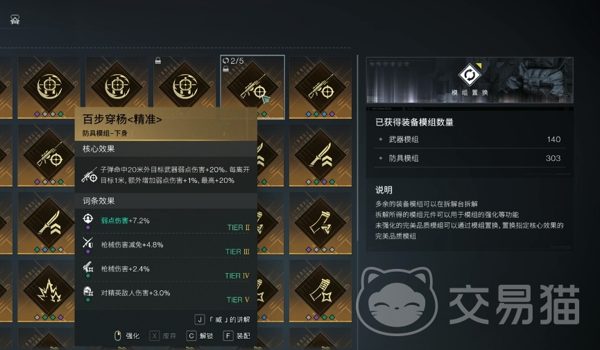 在模组的选择上主要是看模组的词条属性,在词条的属性上玩家就要追求能够提高伤害的属性词条,至于是否带有精英伤害属性的话就看玩家能否拥有了,所以说在装配时可以以这些模组为主: