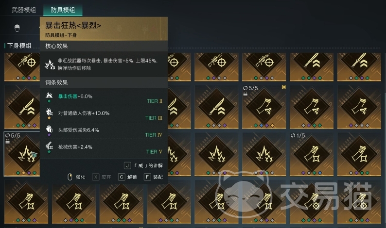 2、暴击狂热,这个模组的话同样也是两伤伤害属性词条,如果说是带有【非近战】型暴击属性加成的只能在游戏前期使用下,到后期还是要带元素伤害和暴击伤害的模组;
