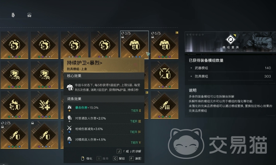 5、持续护卫,在这个模组上建议玩家选择带有暴击伤害或者是元素伤害,然后再叠加一个精英敌人伤害属性的加成,这样模组的价值会高一些。