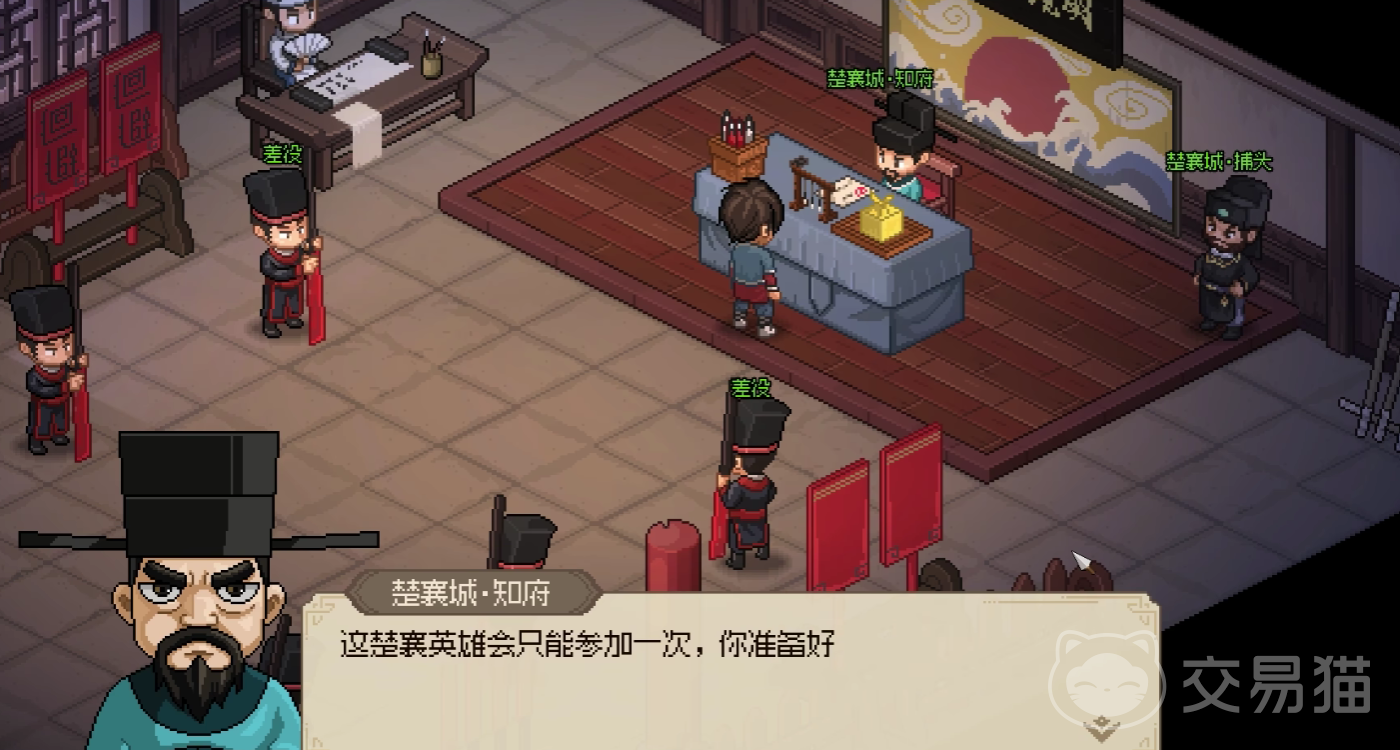 如果玩家想要开启英雄会的剧情内容,就必须将主线剧情推进到楚襄城之后,此时玩家前往楚襄城的知府处,通过对话知府即可获得参与楚襄城英雄会的机会,在参与之后,玩家总共要挑战三个回合,在三个回合取得胜利之后,玩家即可拔得头筹,此时玩家重新回到楚襄城知府处,寻找到知府就能够领取奖励了,领取奖励时,知府总共会对玩家抛出四个对话框,其中分别包含名望奖励,铜钱奖励,官府腰牌奖励和蟠龙钥匙,这四个奖励玩家都可以获得,和知府进行以此对话即可。