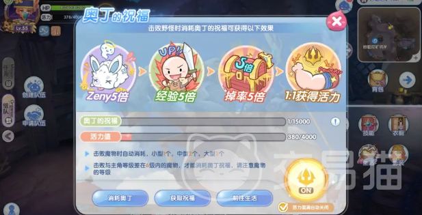 在该作中等级被分为角色等级和技能等级,两种是单独计算的,玩家不管是转职还是想进行冒险都有达到对应等级的条件,所以获取这两种经验对于新手而言非常重要,想要快速获取经验我们需要了解一个重要系统,那就是奥丁的祝福,在完成王城站岗和每日委托以后就能获取一定数量的祝福,开启祝福再去野外挂机玩家可以获得,五倍的挂机经验,五倍的挂机金币,五倍的掉落获取,这能大大提升玩家的获取效率,所以建议新手获得祝福后再去野外挂机。