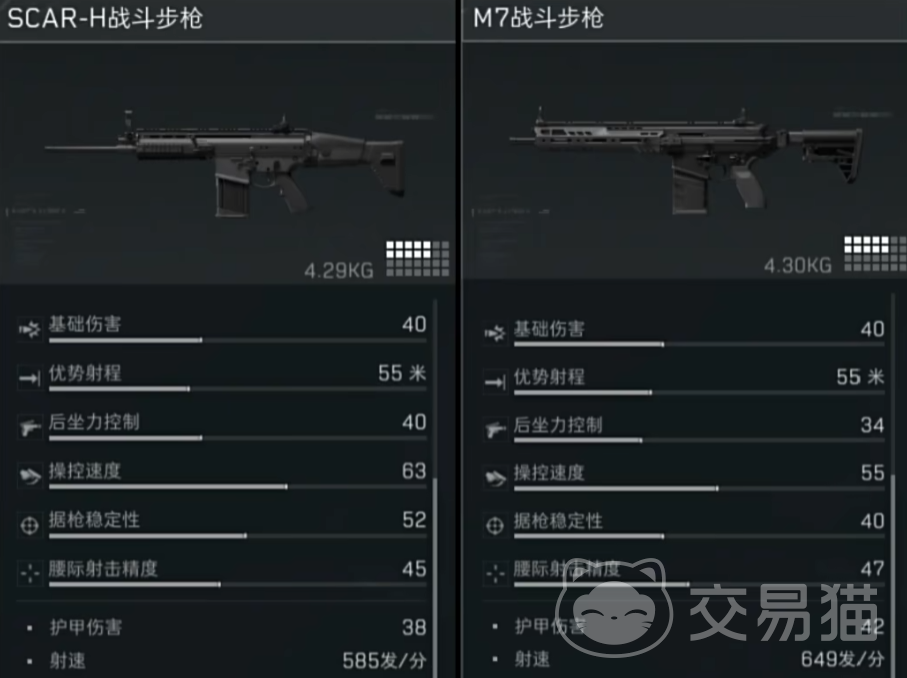 Fal这款枪的特点是单发的伤害比较高,而且中远距离的后坐力控制比较稳定,同时这把枪的性价比还比较高,而在三角洲行动里最符合这款枪特点的就是Scar这款步枪了。Scar本身的售价只有7万哈夫币,但是除了射速每分钟低了60以外,它其他的数值甚至要比裸枪售价21万的M7战斗步枪还要高,而且最关键的是这把枪非常好控制,搭载四级弹以后甚至可以越级挑战六级甲,名副其实的三角洲神枪。