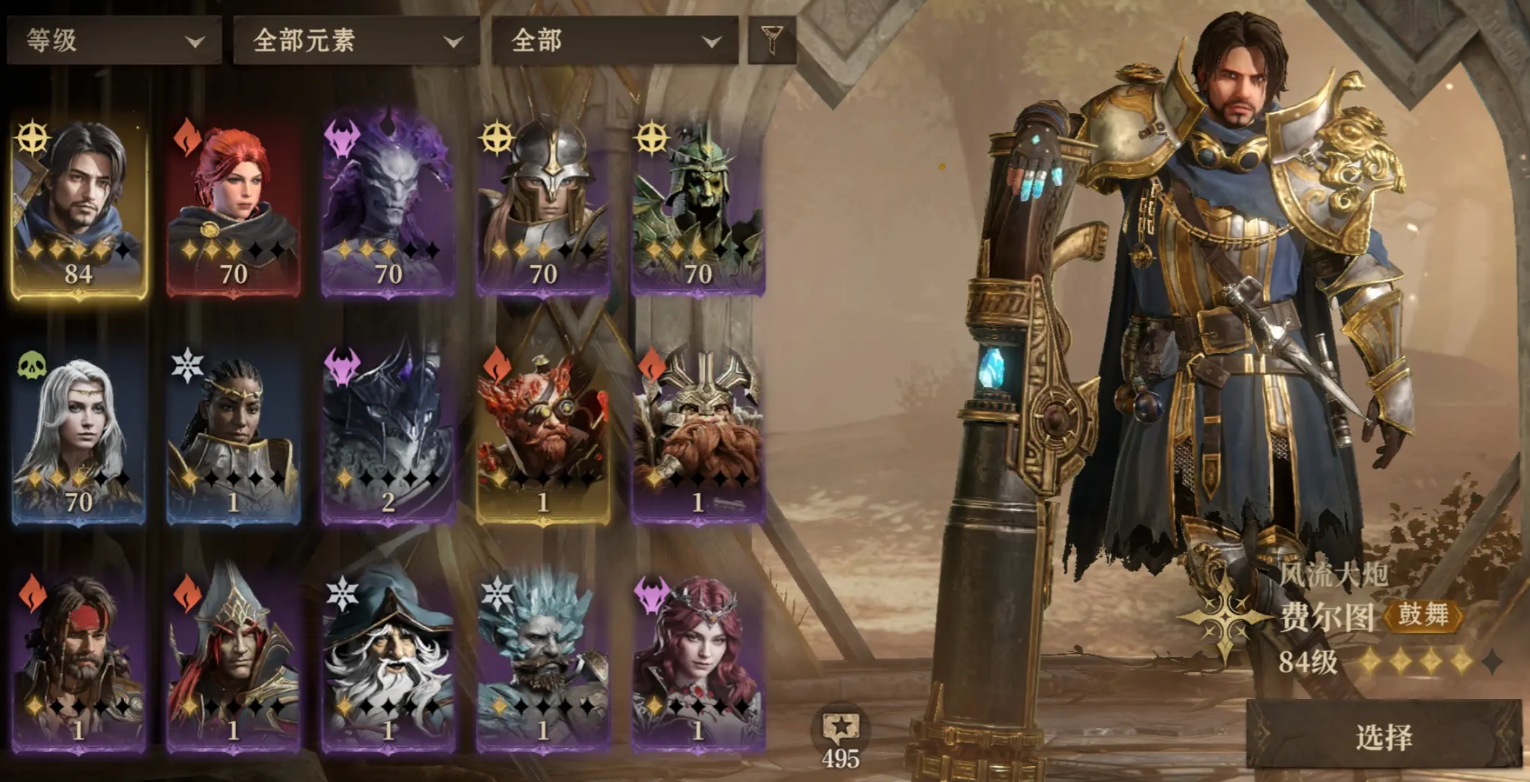 他的战技能对敌方目标进行三次炮击,每次都能对范围内的敌人造成100%攻击力的光耀伤害,如果命中超过两个敌人还能为自身施加鼓舞状态10秒,他的威能技可以对范围内的敌人造成600%攻击力的伤害,释放的时候如果费尔图在鼓舞状态的话,会消耗该状态造成额外两次600%攻击力的光耀伤害,并增加威能技的充能进度。