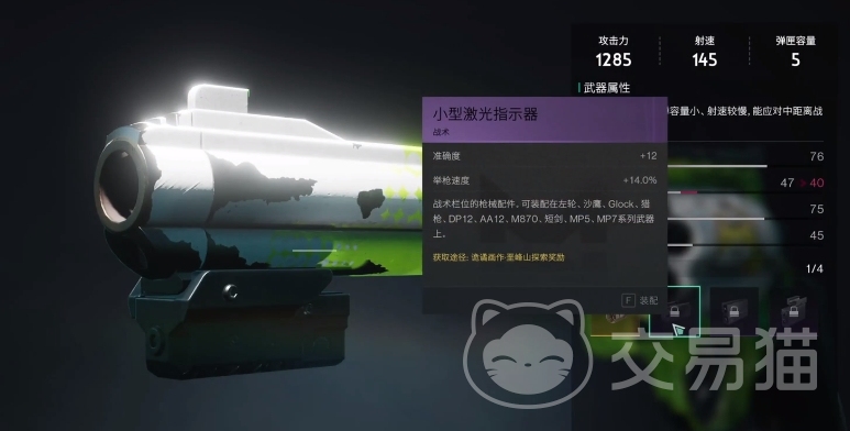 效果方面它也是十分突出的,在装配小型激光指示器后,玩家武器的准确度可提高12点,举枪速度更是能增加14%,而这种配件主要就是适用于左轮、沙鹰、DP12、AA12、M870、短剑、MP5系列等武器,可以说在适配性方面表现还是很不错的。
